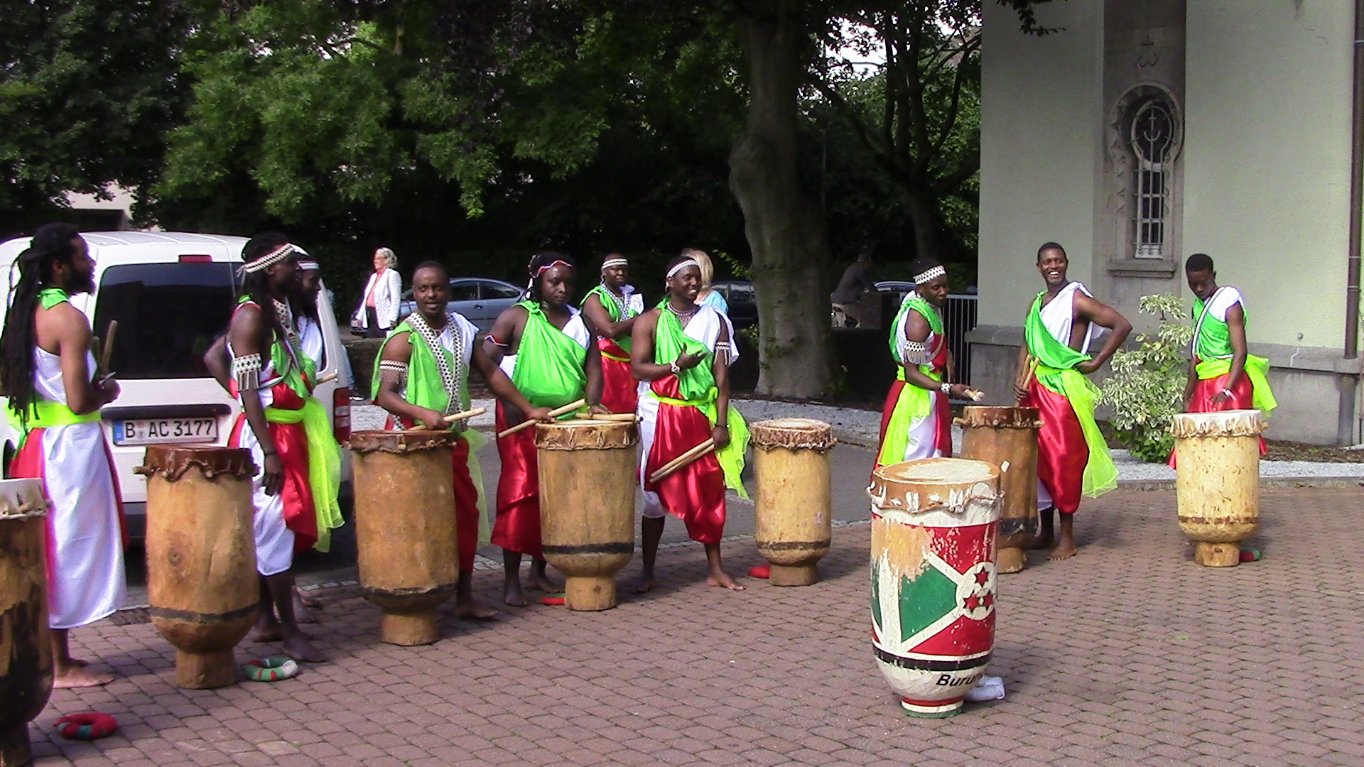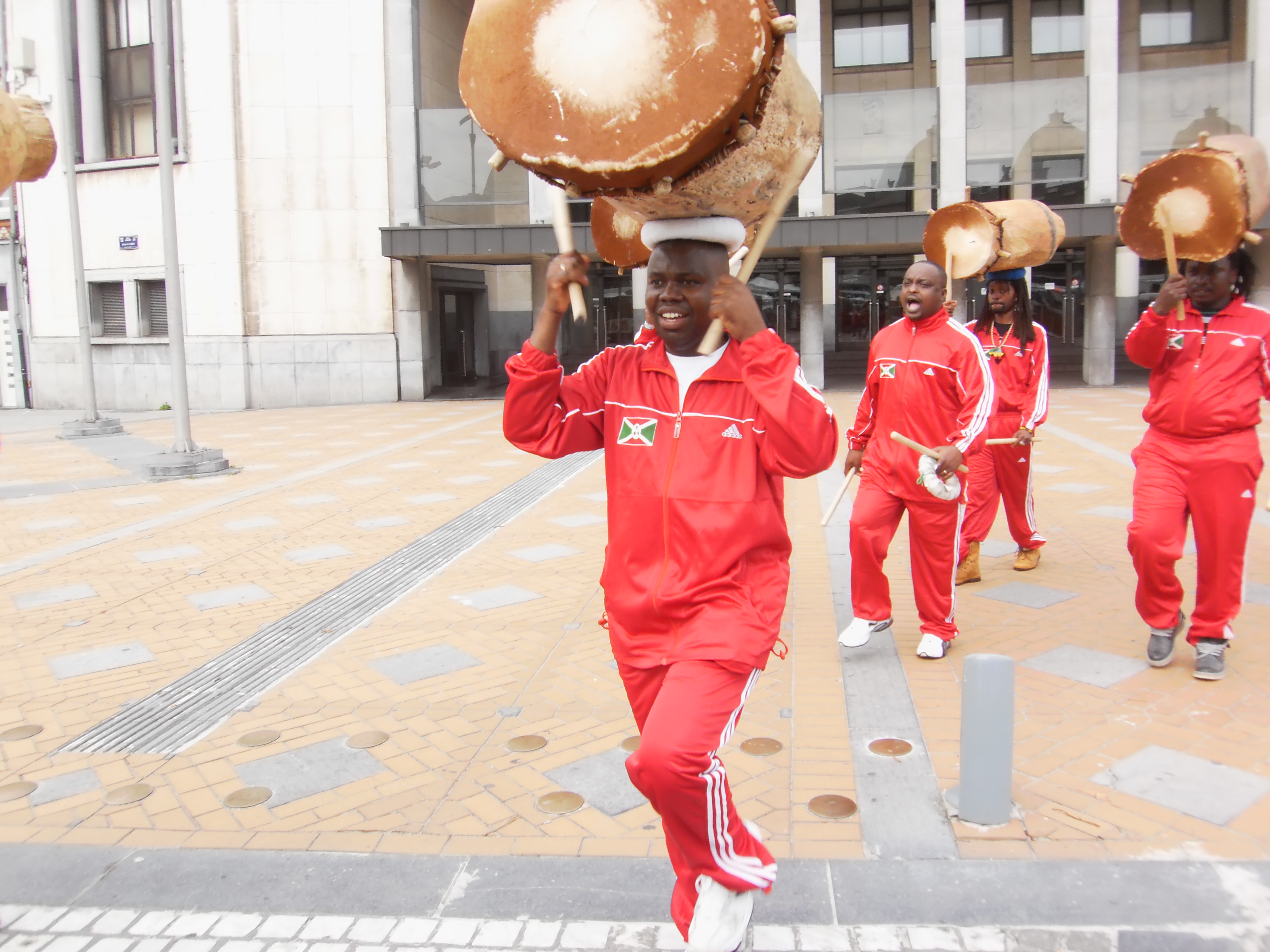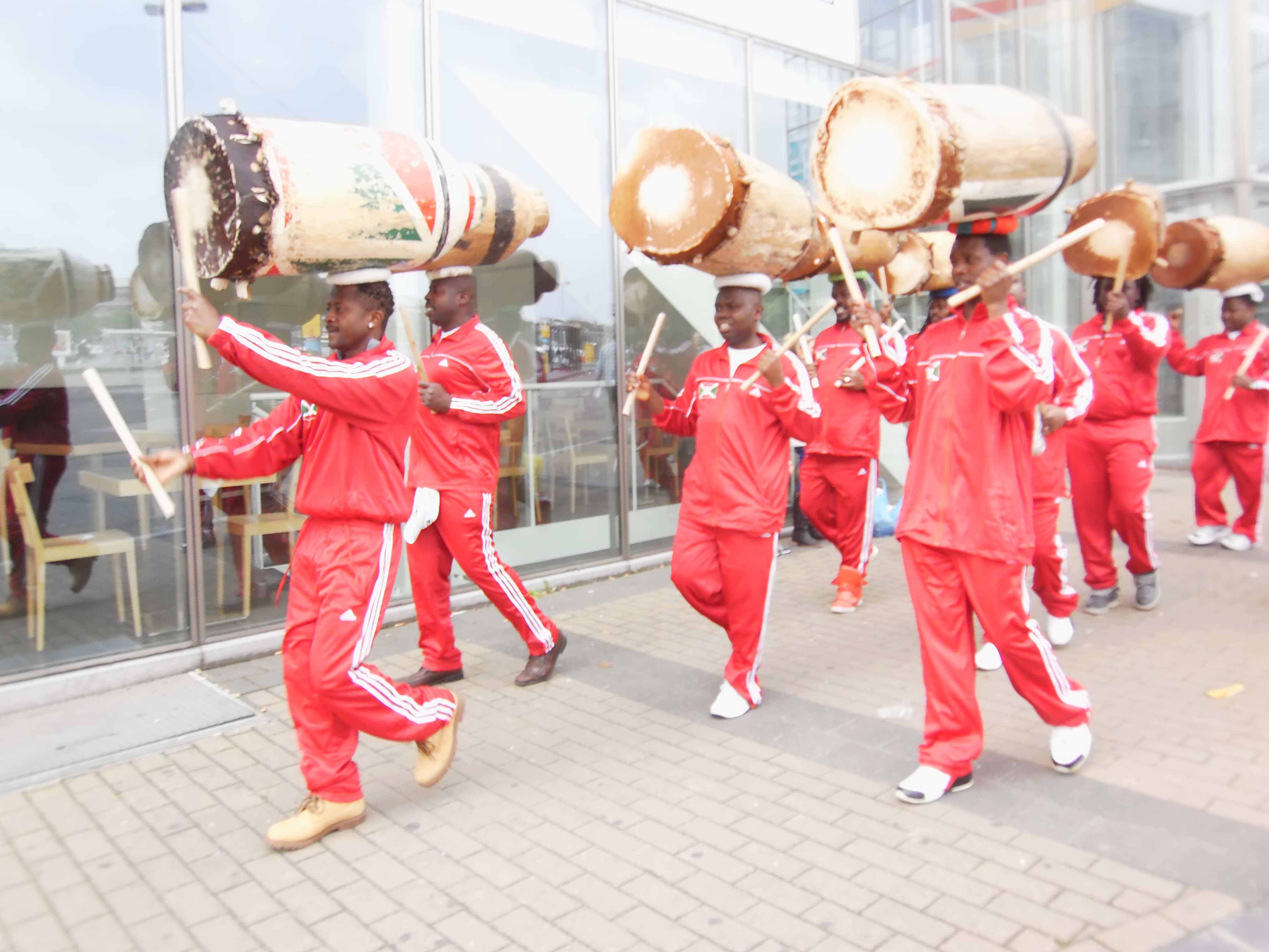 Beim Trommeln, tragen die Trommler traditionell ihre Trommeln auf dem Kopf, marschieren im gleichen Rhythmus und singen dabei, in burundischer Sprache, die schönsten Lieder der Trommel.