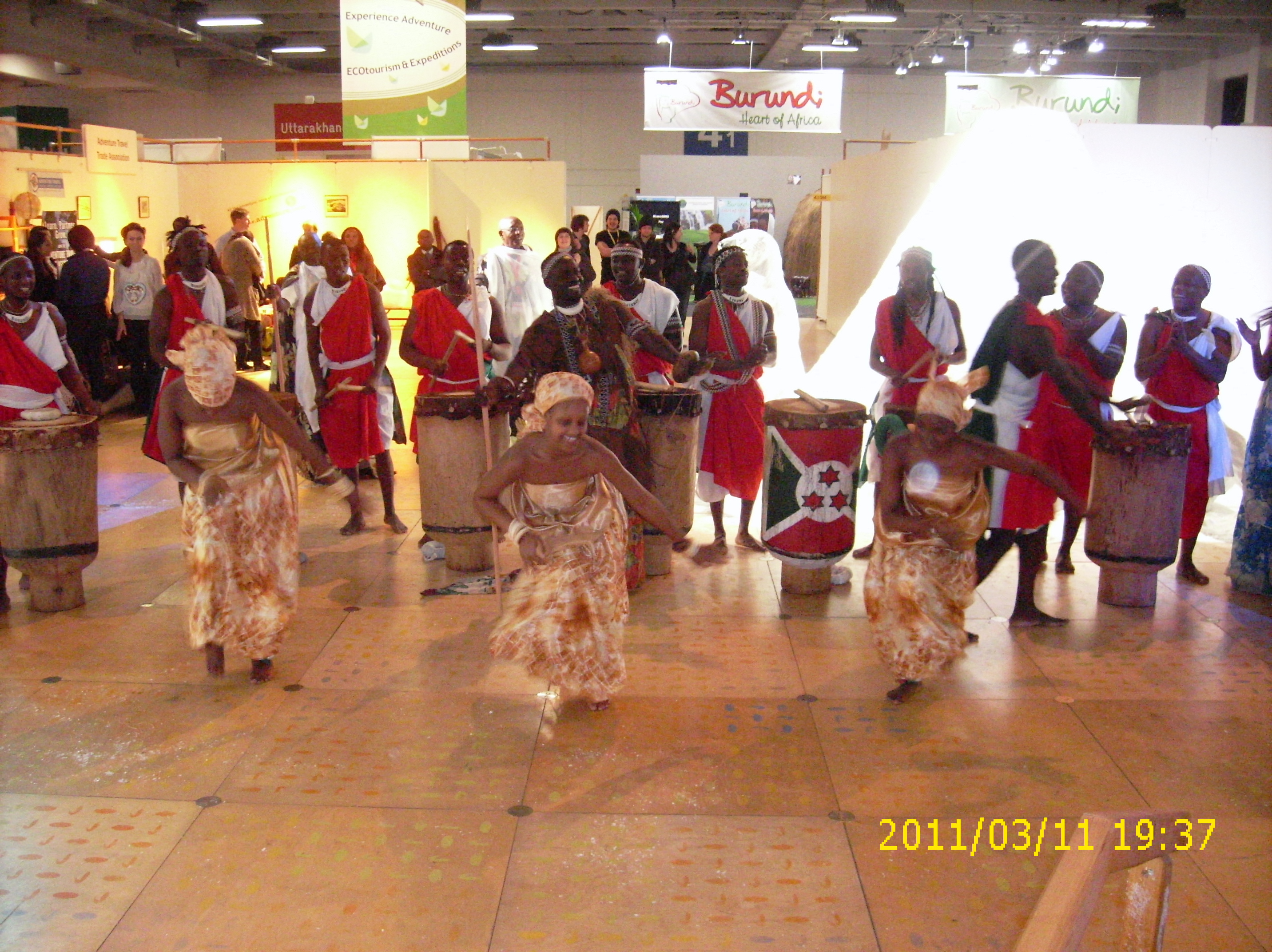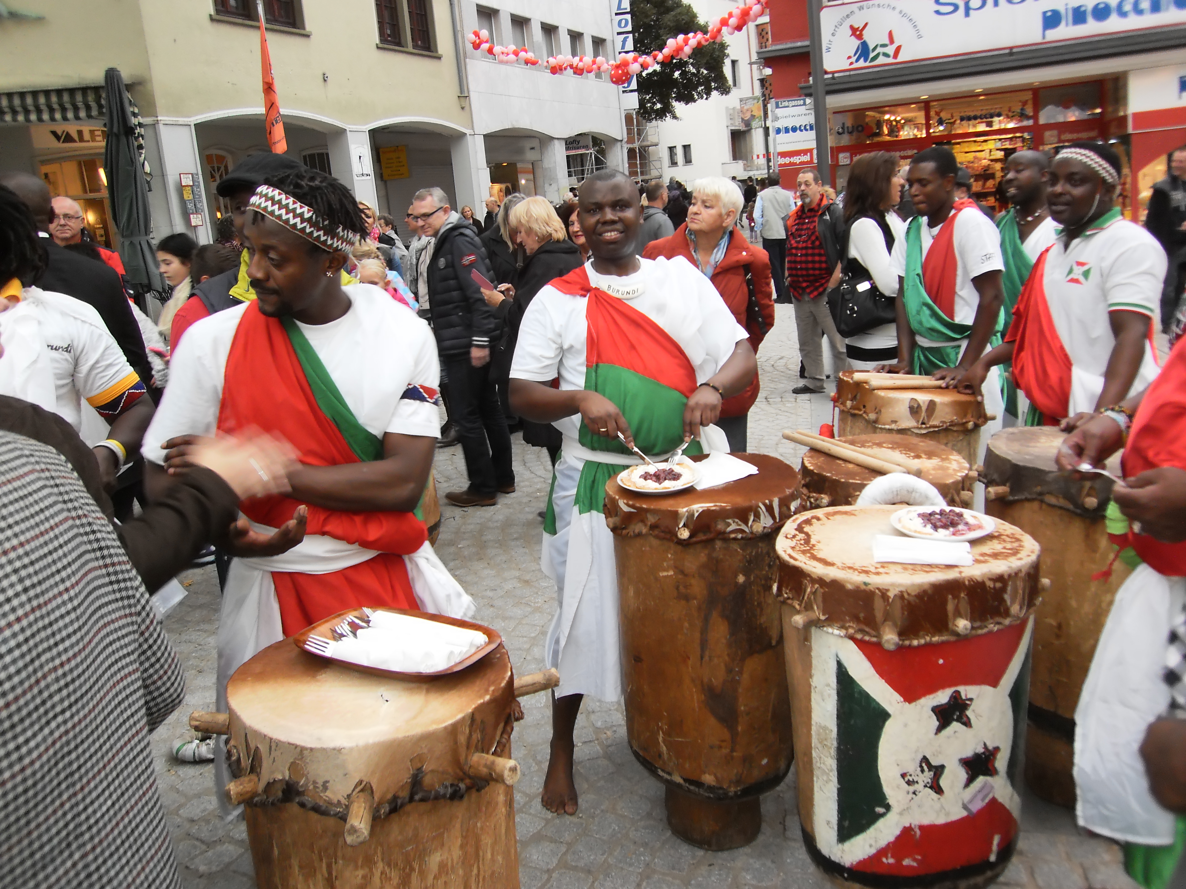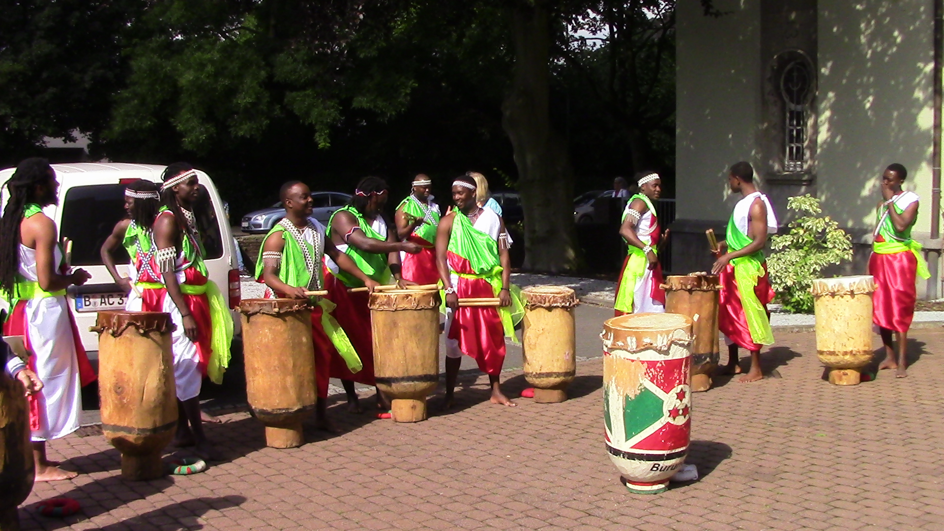 Beim Trommeln, tragen die Trommler traditionell ihre Trommeln auf dem Kopf, marschieren im gleichen Rhythmus und singen dabei, in burundischer Sprache, die schönsten Lieder der Trommel.