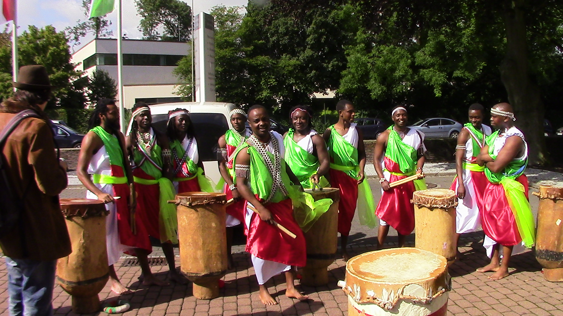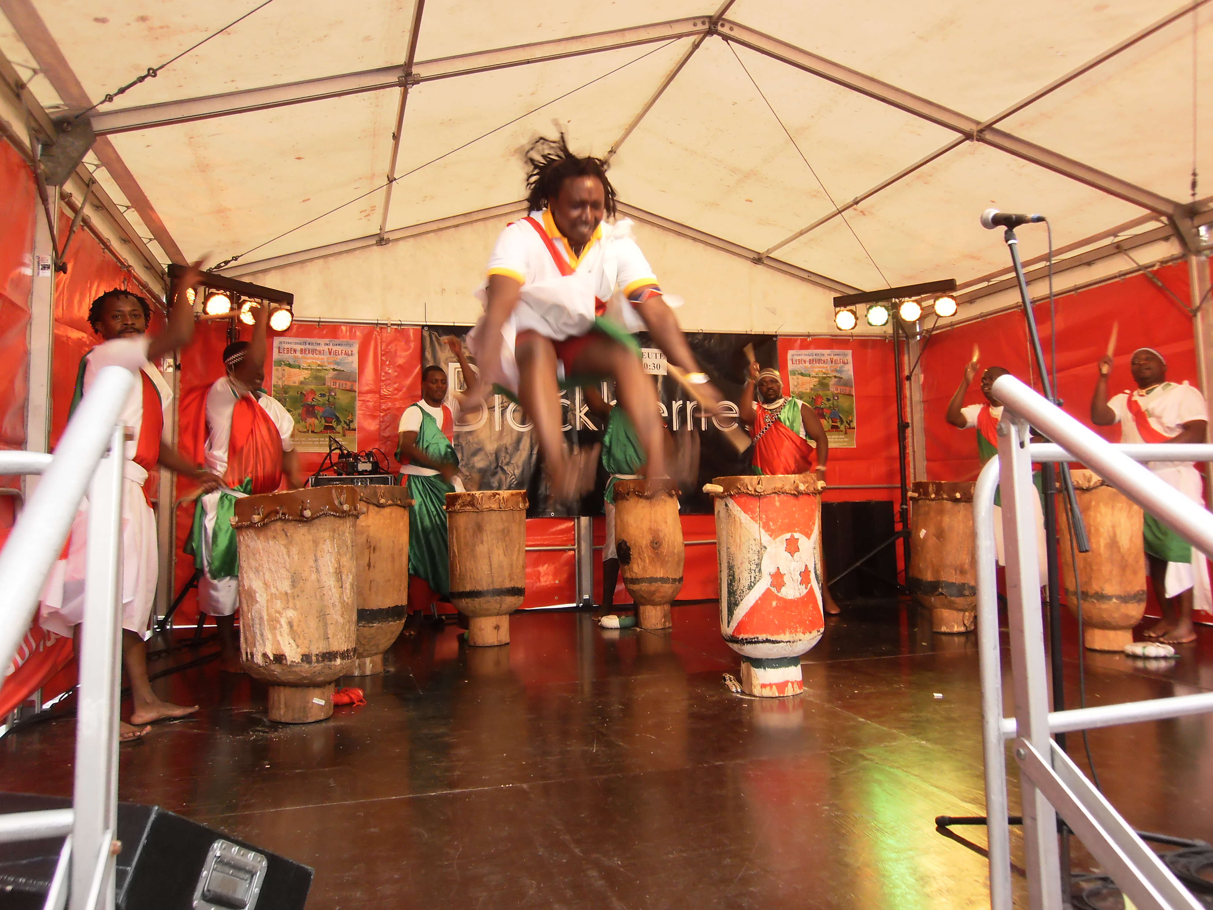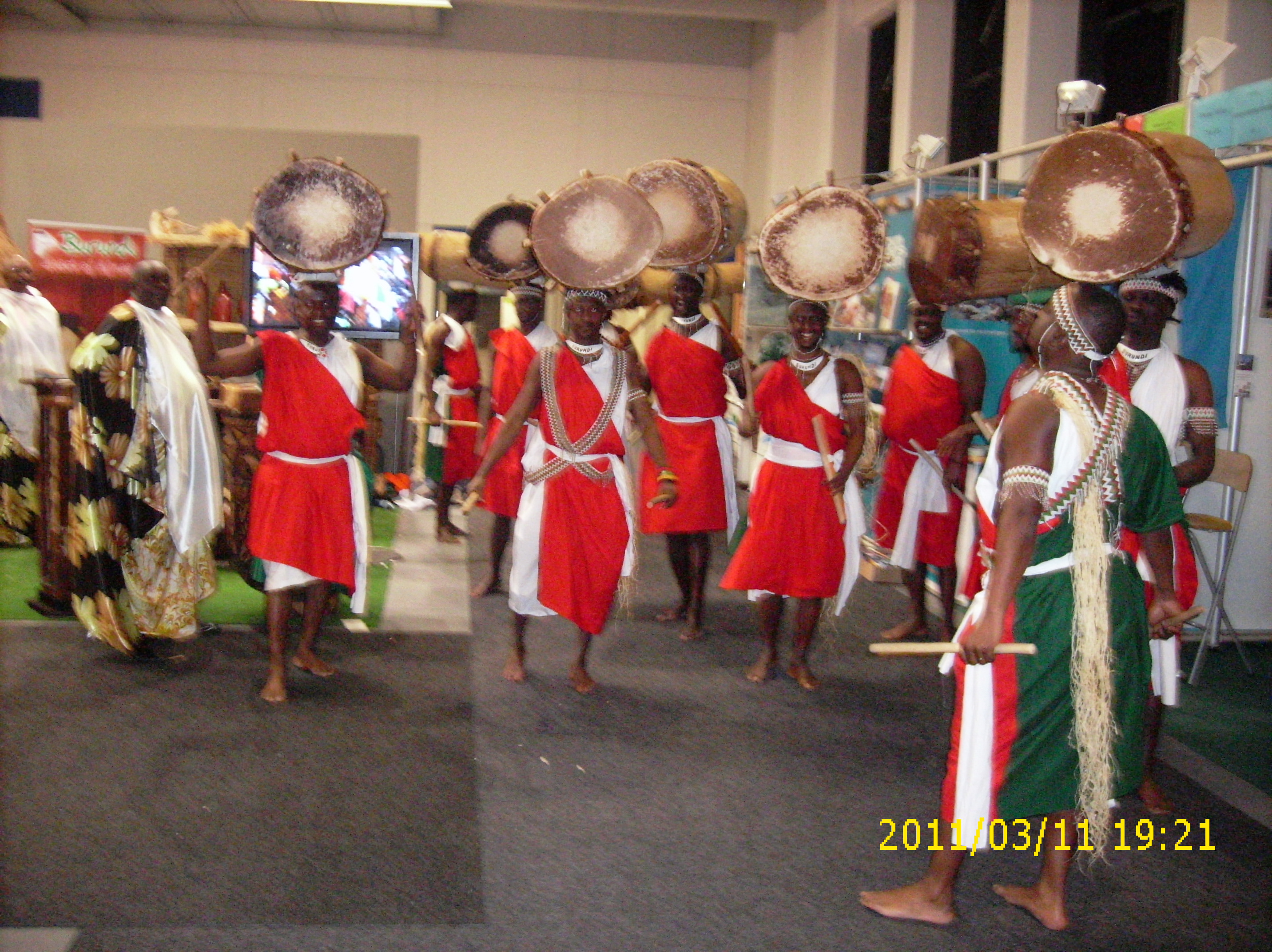 Beim Trommeln, tragen die Trommler traditionell ihre Trommeln auf dem Kopf, marschieren im gleichen Rhythmus und singen dabei, in burundischer Sprache, die schönsten Lieder der Trommel.