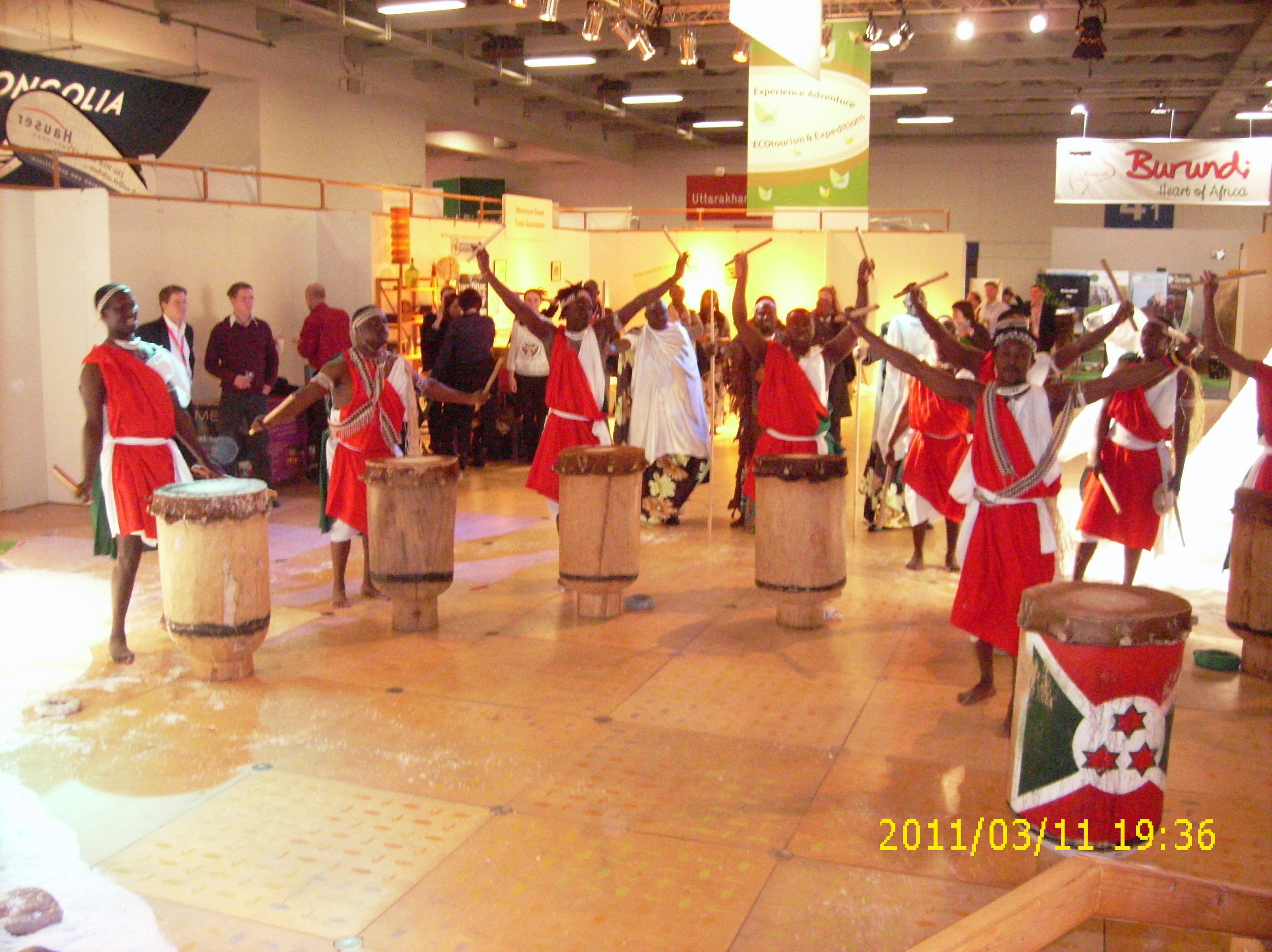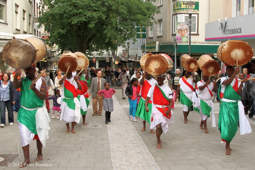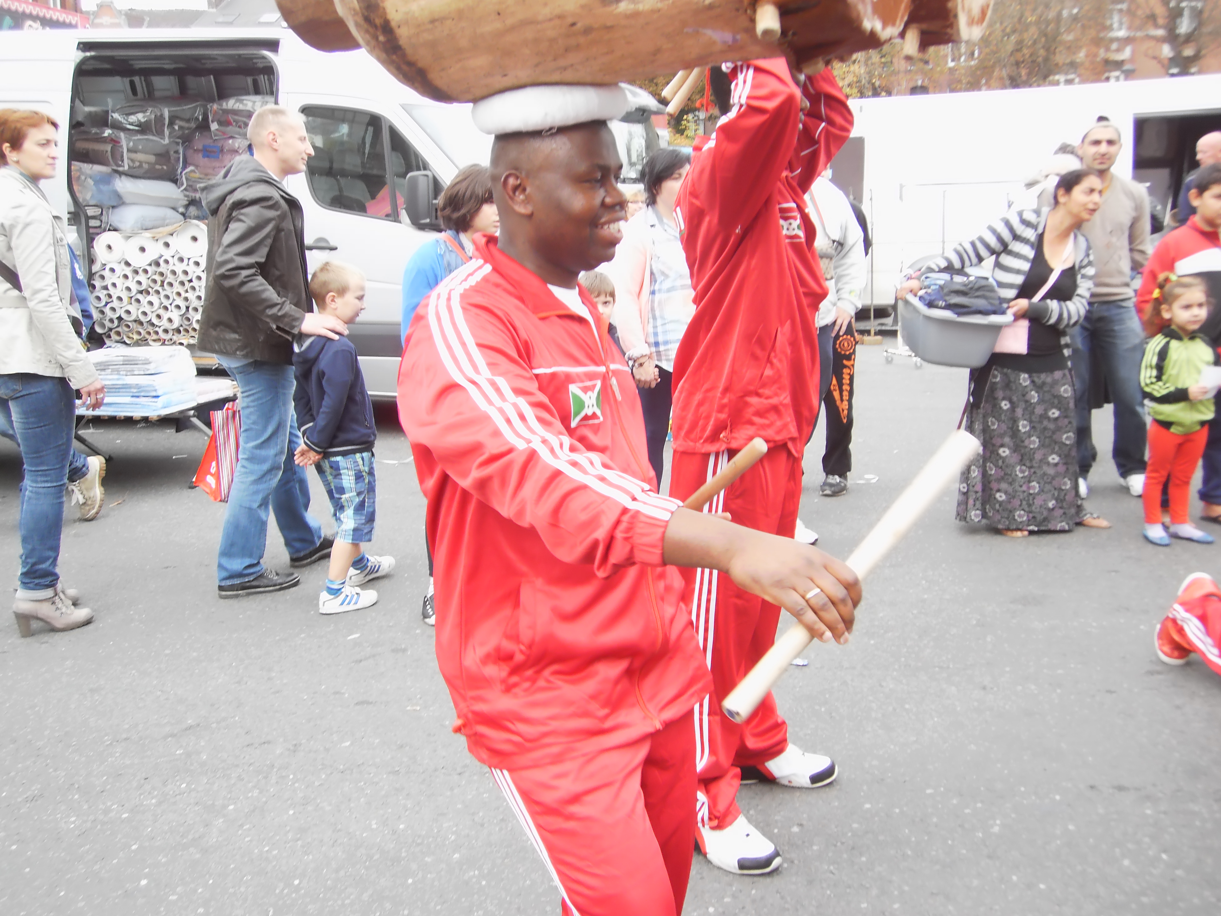 Beim Trommeln, tragen die Trommler traditionell ihre Trommeln auf dem Kopf, marschieren im gleichen Rhythmus und singen dabei, in burundischer Sprache, die schönsten Lieder der Trommel.